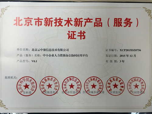 日前,我会会员北京云中旗信息技术有限公司近期获得 “北京市新技术新产品(服务)证书”。该证书由北京市科委、市发改委、市经信委、市住建委、市质监局和中关村管委会六部门组织相关专家、按照《北京市新技术新产品(服务)认定管理办法》(京科发〔2014〕622号,以下简称《办法》)的规定,经过严格筛选及认定小组审核、予以认证。该认证的顺利通过,再一次证实了云中旗公司的技术实力以及公司坚持创新发展、服务中小型企业的决心。
